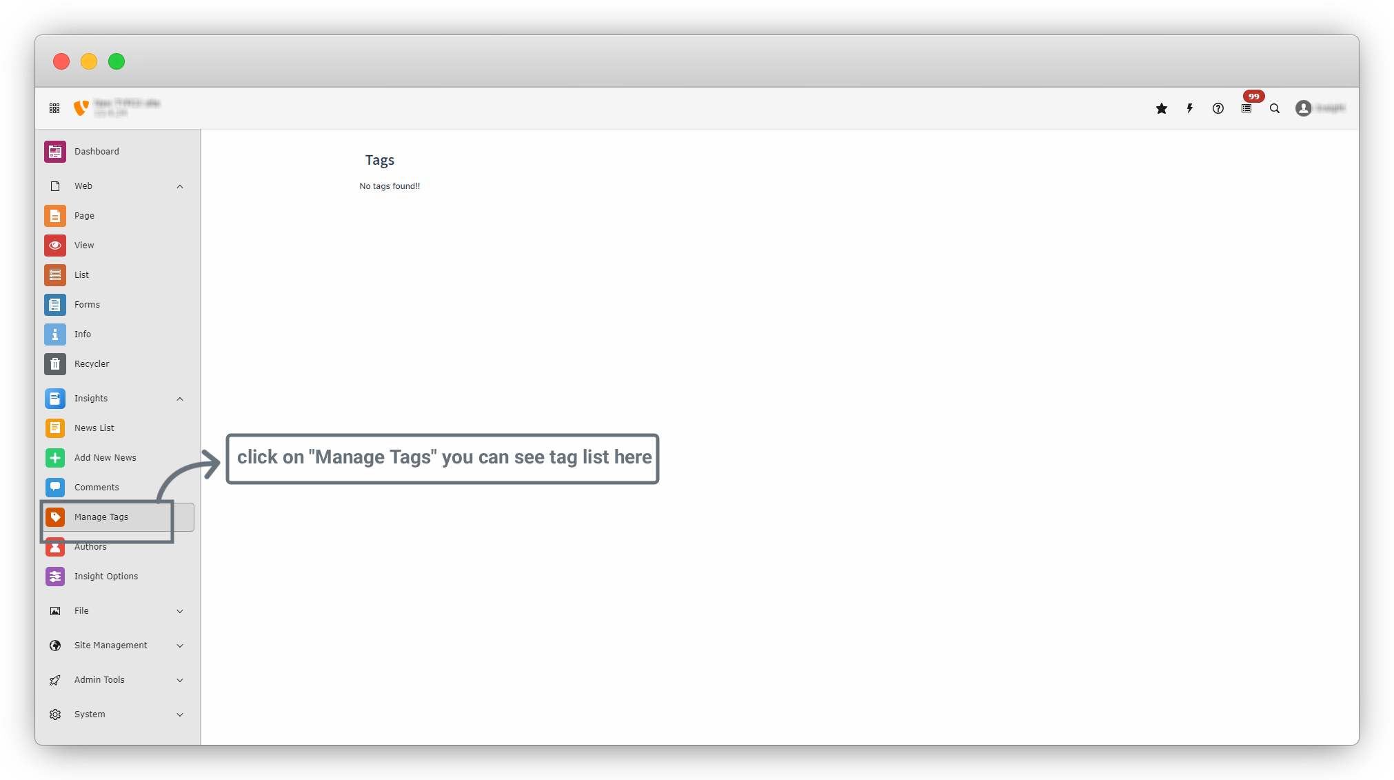 3. A new screen will open. Now Click on Insights > Tags to add a tag.