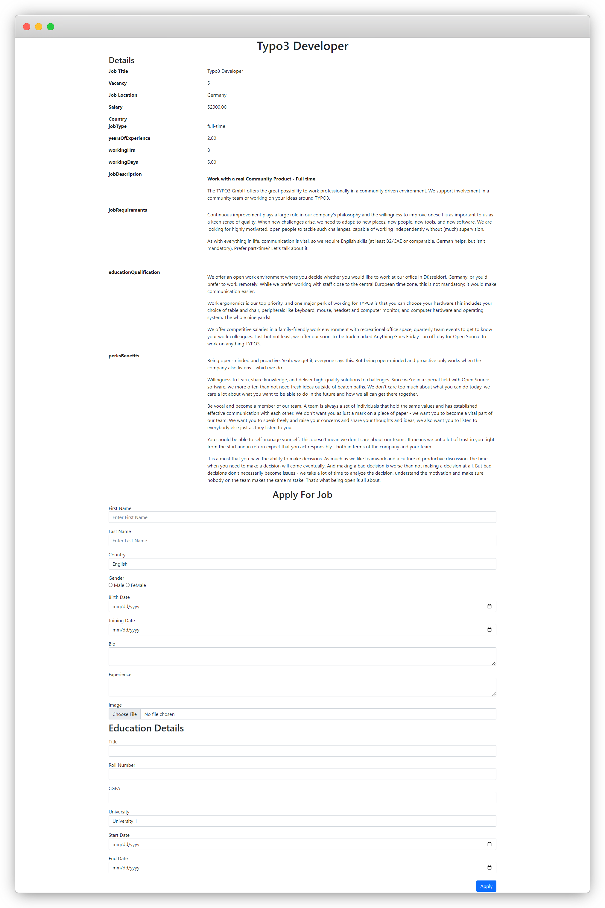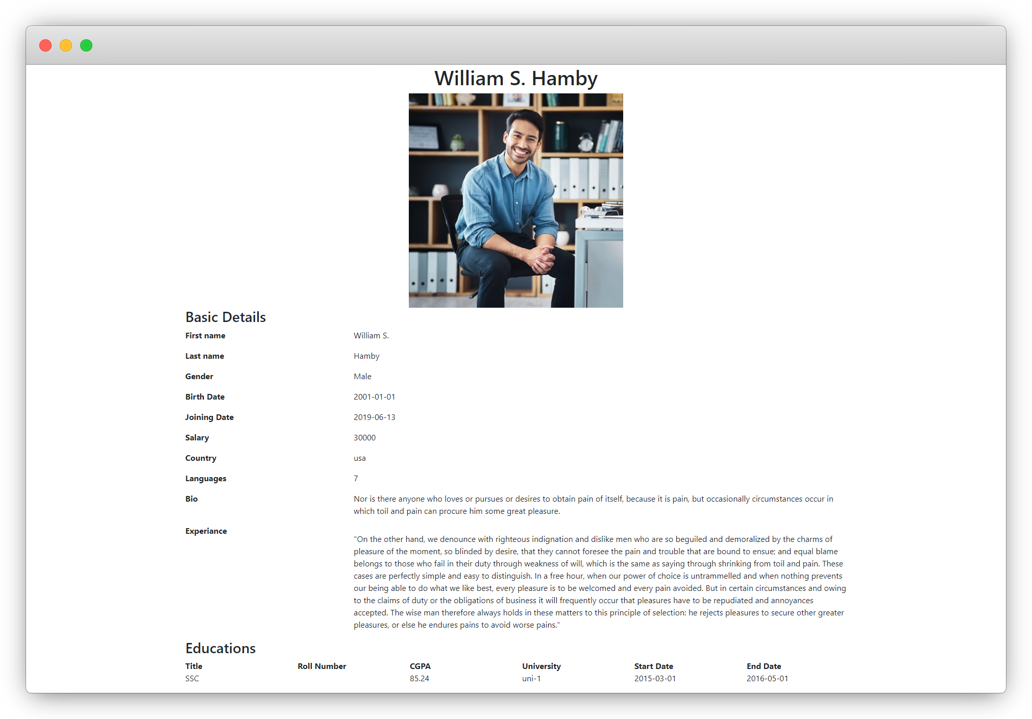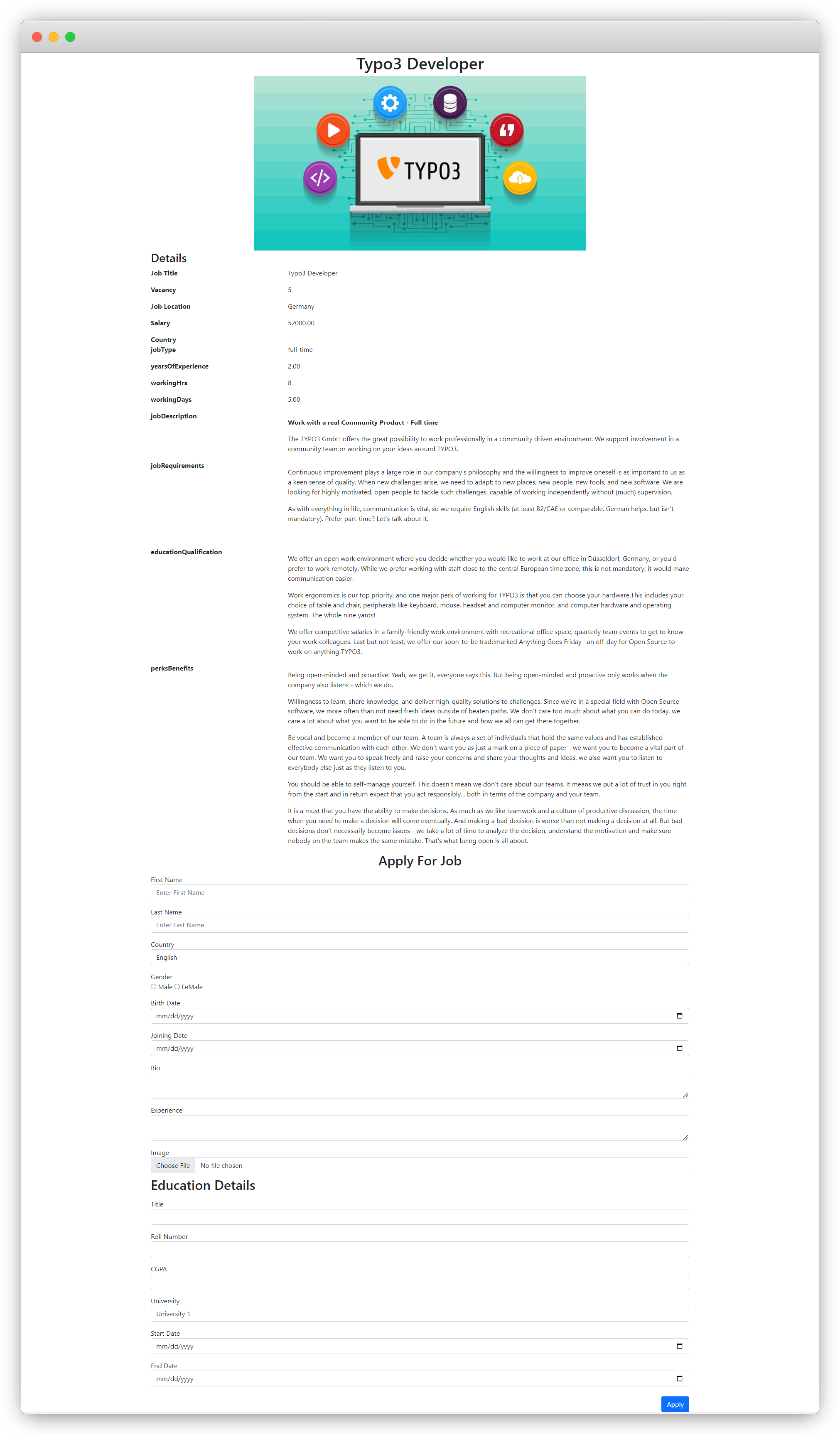 6. Now check the employee detail page and job detail page and you will see the pages containing the images, as you can see in the screenshots below