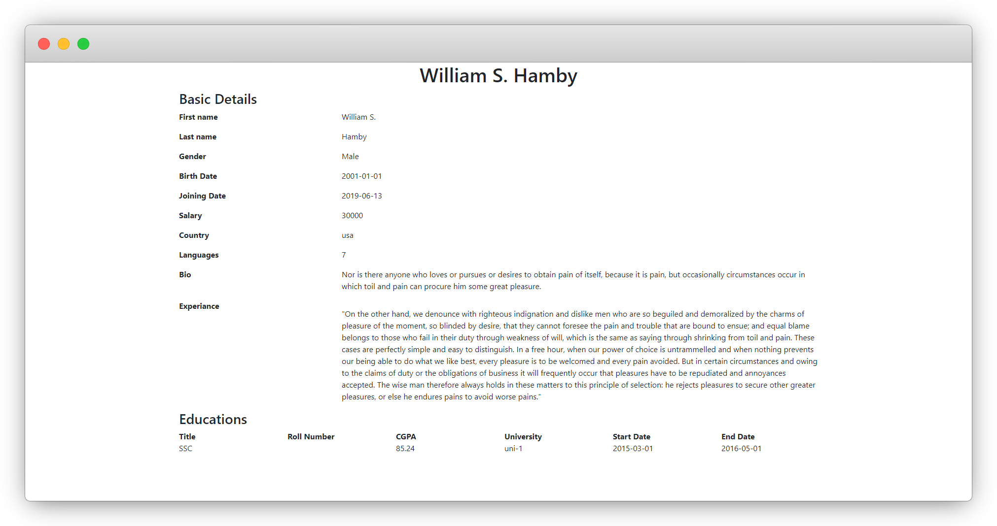 8. After updating the settings, let’s check the detail page for employee and job, and you will see the images disappear on these pages as we have unchecked the checkbox “Show Image in Detail Page”. Below are the screenshots of the detail pages of employee and job.