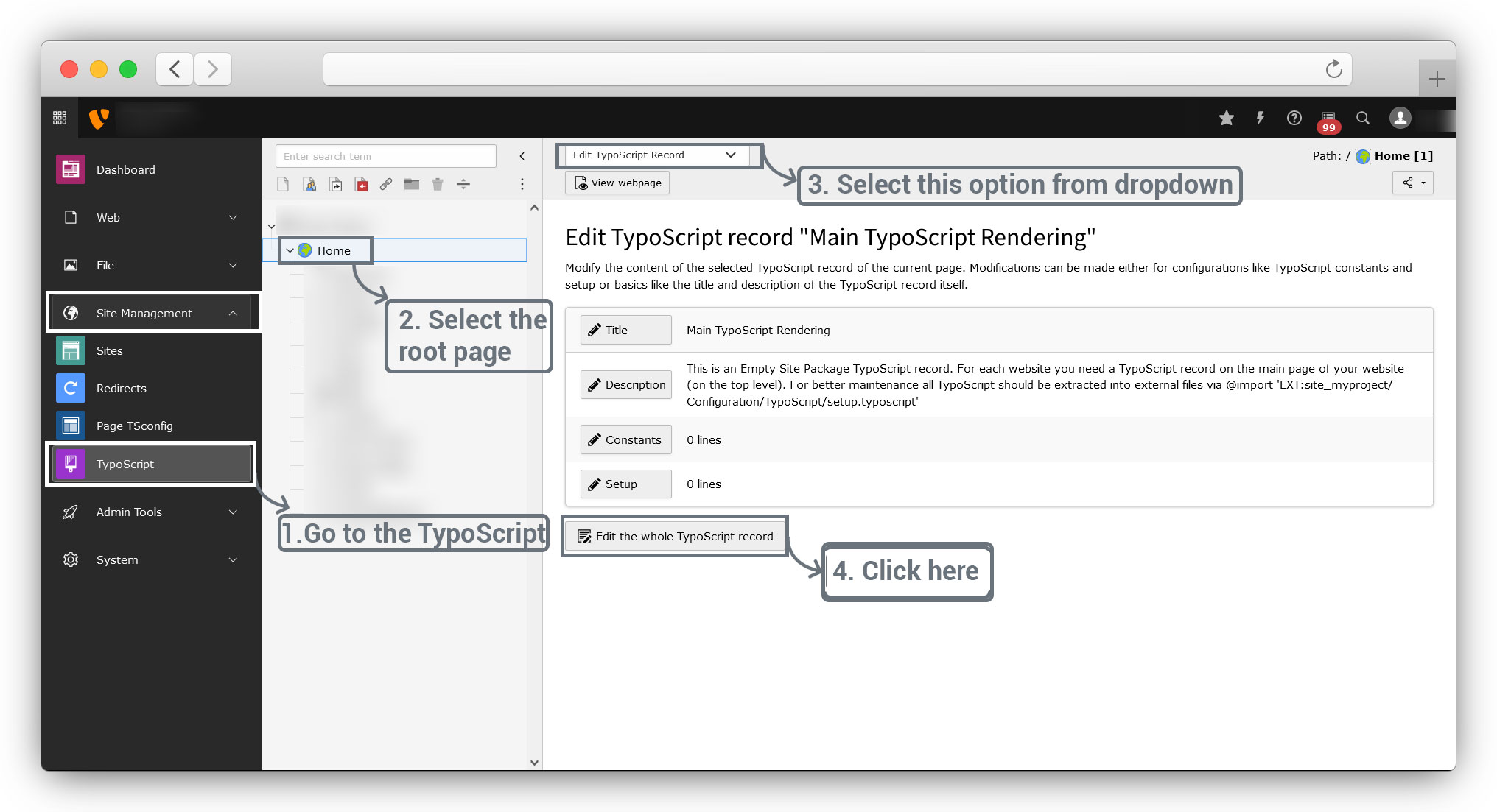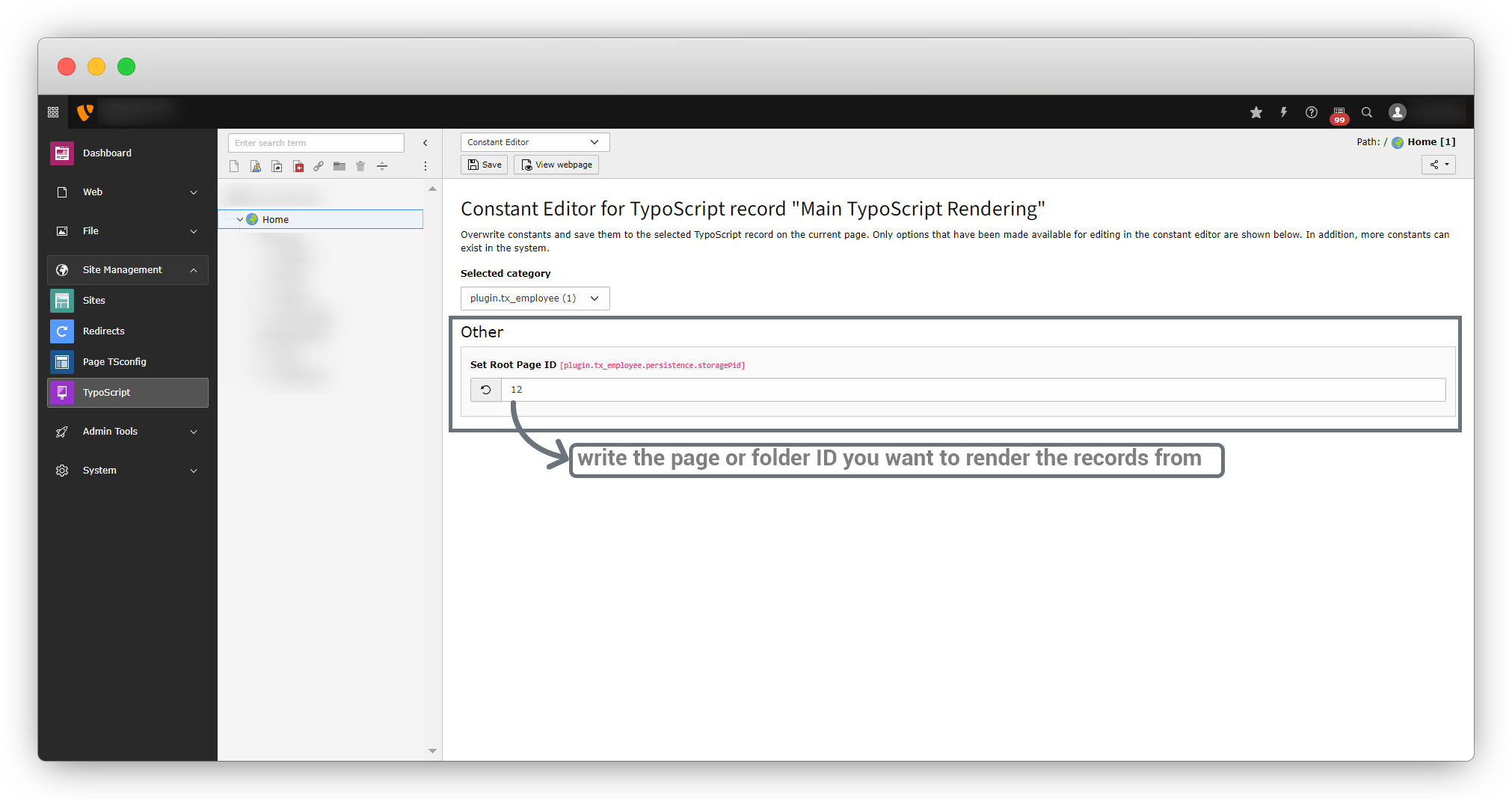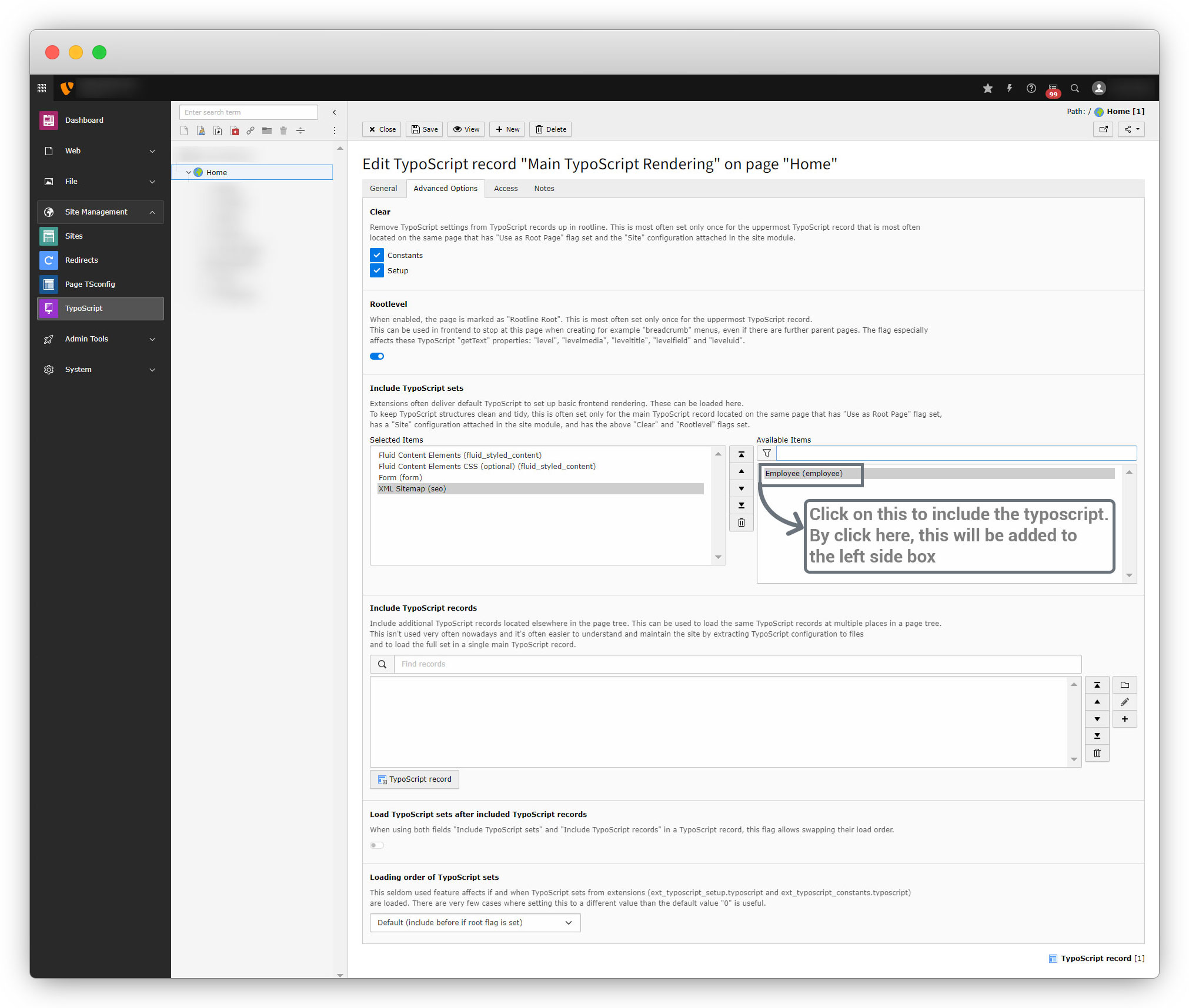 - If this is not the case, use the method described in the previous section Make TypoScript available for static includes.