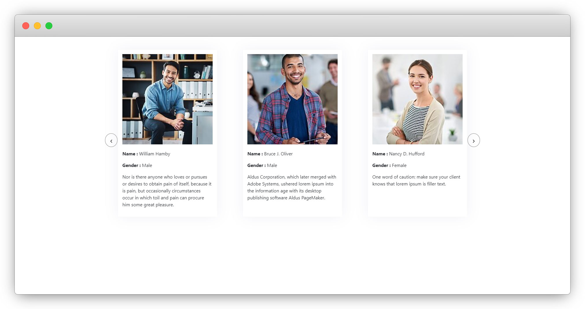 Here the employee list needs some more modification to its look and feel, let’s implement a slider of employees with some style.